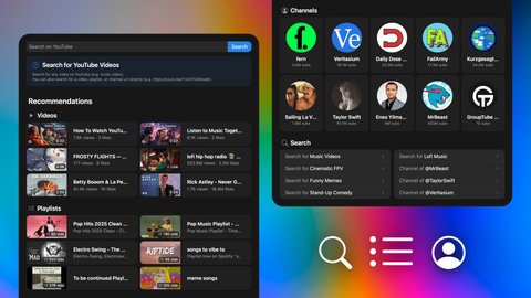 Searching for YouTube videos to watch has been substantially improved. Now you can search and find channels and playlists and add their videos to the queue directly.