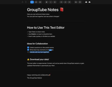 GroupTube Apps mark a huge milestone for GroupTube. In the future more apps will be introduced, there will be games, there will be collaborative tools, there will be platforms like Spotify and Twitch, and much more! If you want to suggest an app, email us at hello@group.tube.